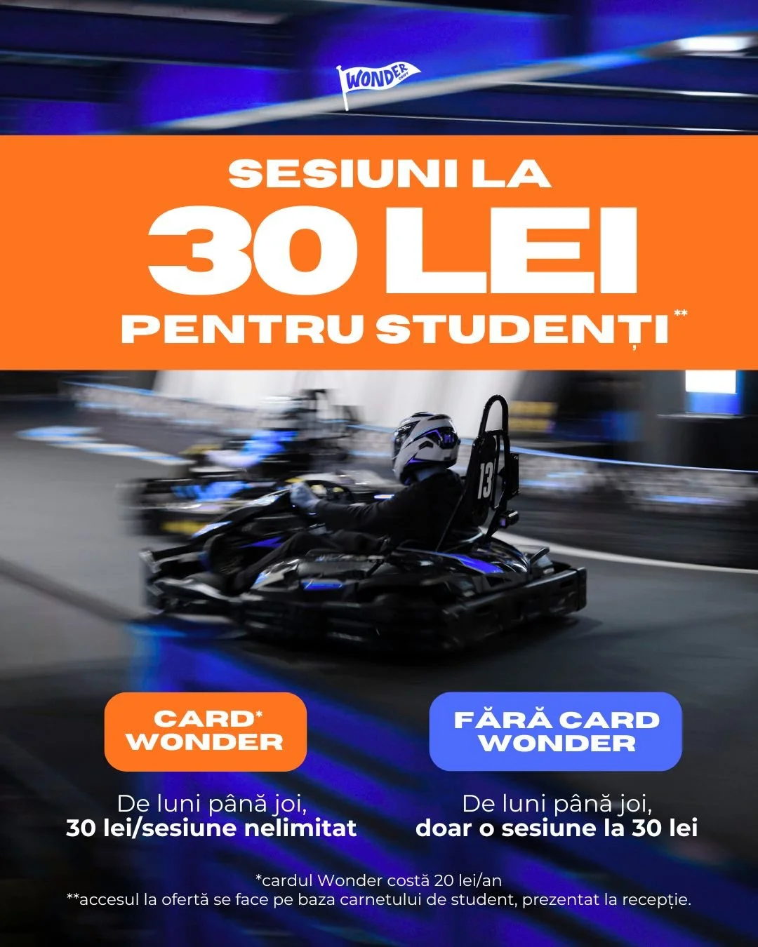 Promoția este nominală, fără limită de sesiuni, și este valabilă atât pentru membrii (deținători ai cardului Wonder Drift – 20 lei/an), cât și pentru non-membri.